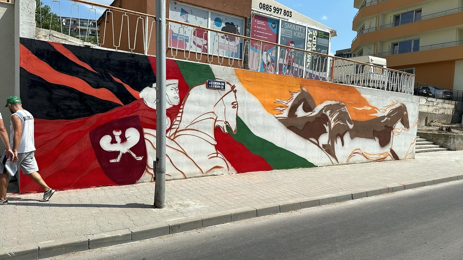Това сподели във фейсбук кметът на район “Владиславово” Николай Костадинов, видя СайтЪТ, където публикува снимки на стенопис край булевард “Св. Елена” под храма “Св. Димитър”.