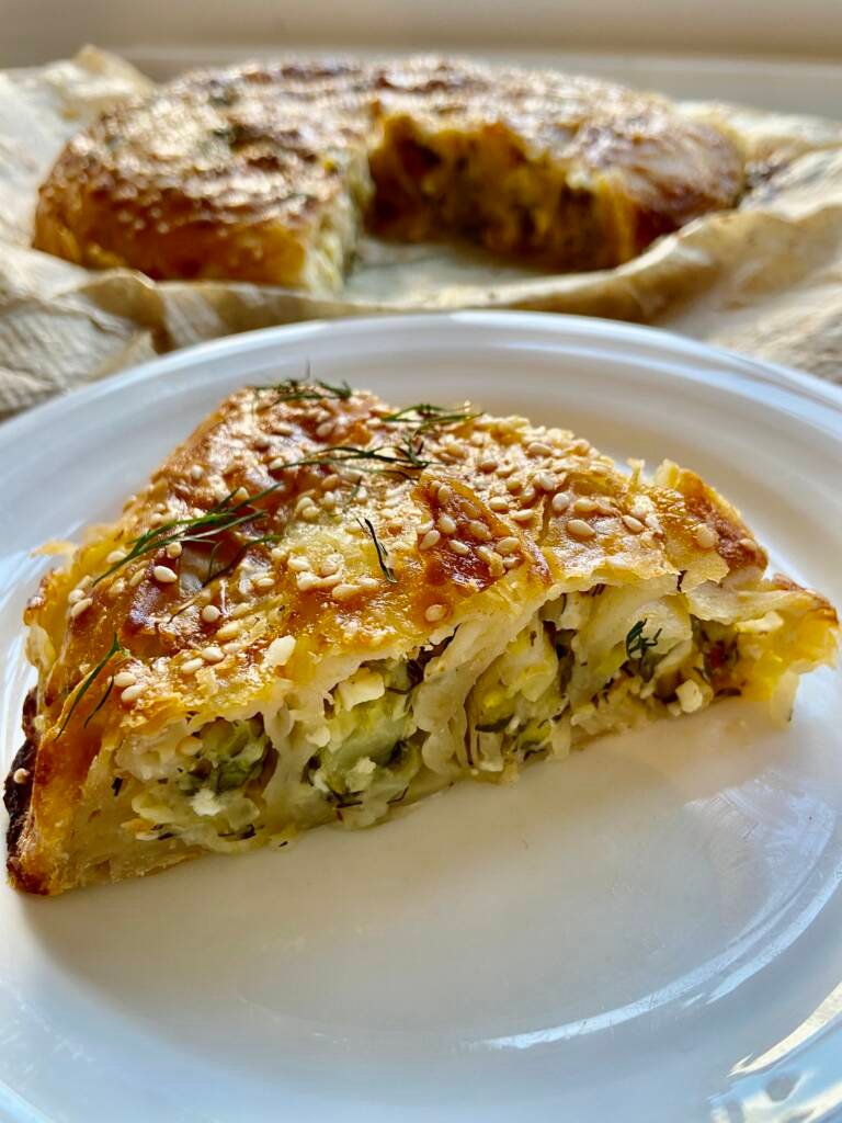 Плънката е лека, ароматна и много балансирана – естествената сладост на тиквичките и лука се съчетава прекрасно със соленото сирене бейаз пейнири (или фета) и свежия копър.