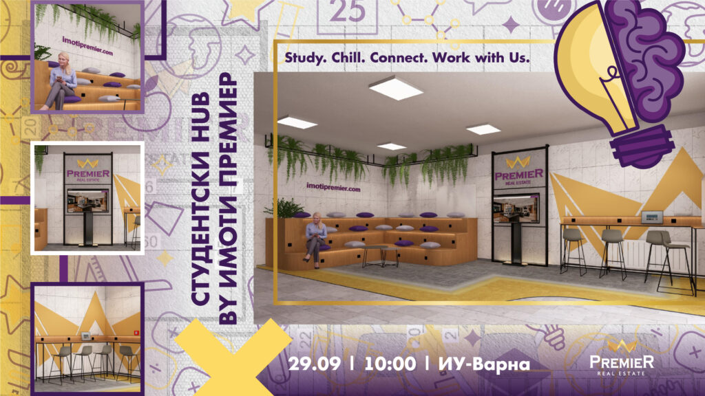 Същият ден, от 10:00 ч., ще бъде открито и модерното споделено пространство за отдих и самостоятелна работа на студентите. То е изградено от „Имоти Премиер“ ООД и предлага уютна и неформална среда за учене, почивка и общуване. Новият хъб се намира на ет. 2 в пристройката на основната сграда на университета, във фоайето срещу залата за хранене.