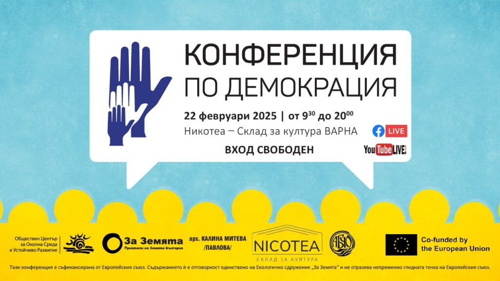 Обществен център за околна среда и устойчиво развитие отправя покана към жителте на Варна да се включат в „Конференцията по демокрация 2025г.“, която ще се проведе на 22 и 23 февруари в „Никотеа“ – Склад за култура Варна, ул. „Никола Кънев“ №1