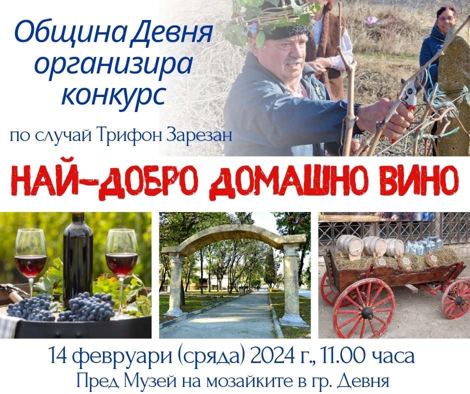 Празниците продължават и през февруари с един от най-тачените дни в народния календар – на Трифон Зарезан! Тази зима община Девня ще отбележи Деня на лозарите и винарите с конкурс „Най-добро домашно вино“, научи СайтЪТ.