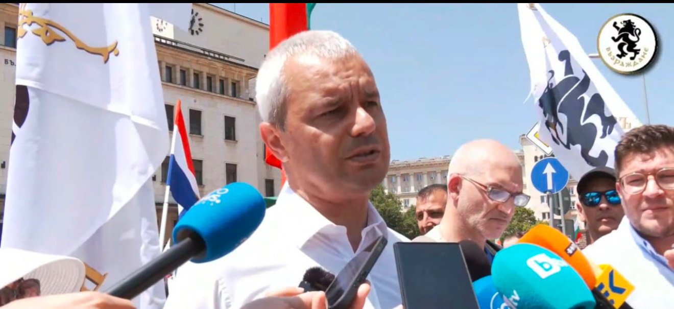 „Никой и нищо няма да ни спре, нито еничарите в парламента, нито Пеевски и неговите пудели от Меч и Величие, които днес открито саботираха протеста, нито ГЕРБ, нито БСП, нито ИТН, нито платените медии, които обясняваха как сме били няколко десетки човека в София, нито стотиците платени анализатори, политолози, коментатори, наблюдатели и обикновени лъжци, нито чуждият натиск, нито предателите, нито нихилистите, нито никой!“, категоричен бе Костадинов.