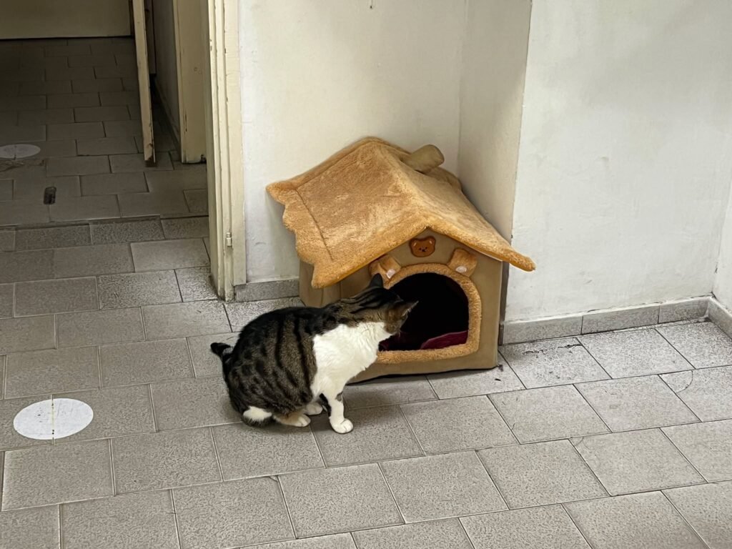 Добре е да поставите готовата къщичка на скрито място, където да не провокира интереса на кучета или агресивни хора, да я увиете старателно със стреч фолио или друго непромокаемо покритие, като е важно да не оставяте голям отвор, през който може спящото коте да бъде нападнато.