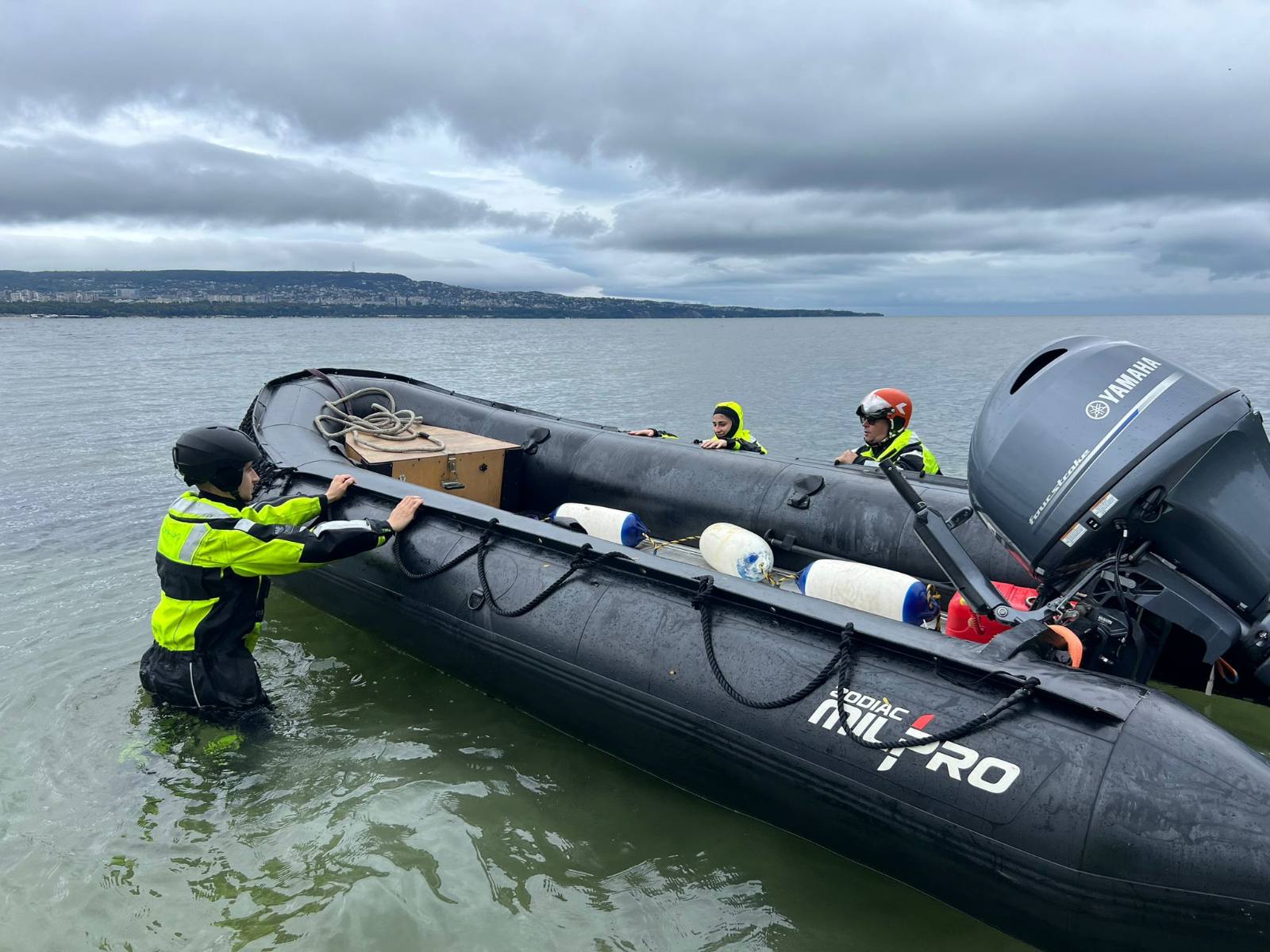 Бяха отработени техники и процедури за обличане и използване на специално морско облекло за работа в тежки хидрометеорологични условия, натоварване и транспортиране на личен състав в корабни лодки Зодиак HD 5 MIL PRO, работа с тях при излизане и престой на непознат и необорудван бряг, извличане на човек паднал зад борд и при продължителни и отдалечени преходи. Също така о.з. контраадмирал Тарапов показа практически техники за откриване на плаващ лед и преминаване през теснини при работа с корабния радар.