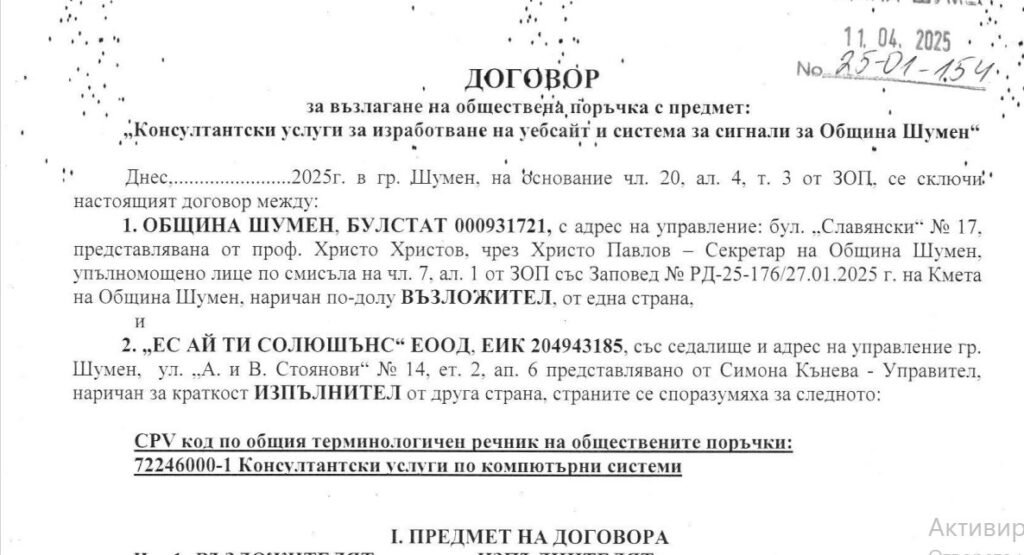 В договора обаче не е посочено кой ще разработи уебсайта и системата за сигнали – дали ще има отделна поръчка или консултантът ще отговаря и за техническата реализация.