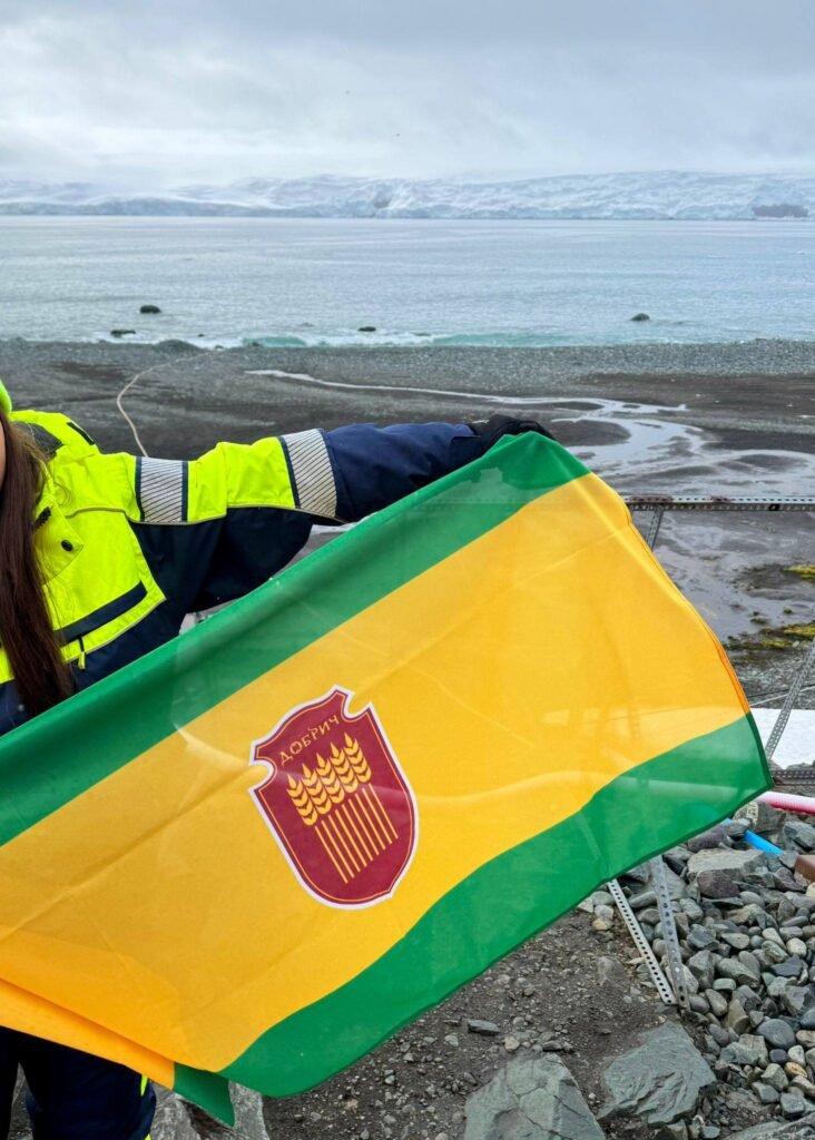 Главен старшина Ивет Илиева, курсант във ВВМУ „Н. Й. Вапцаров“ – Варна, с гордост развя знамето на родния си град Добрич на остров Ливингстън в Антарктида.