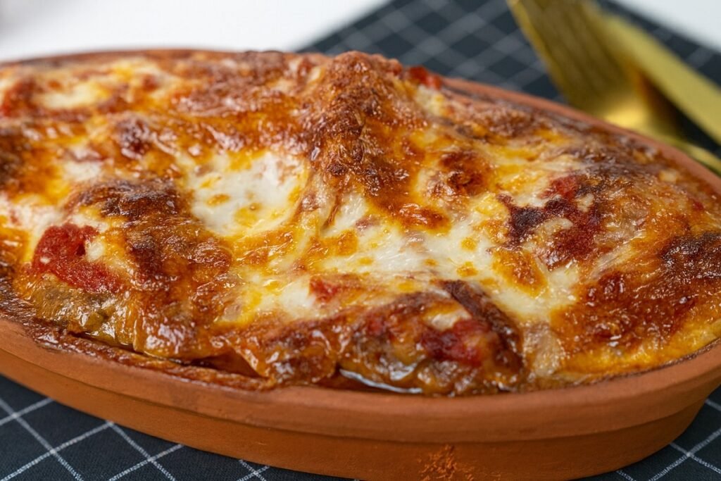 Поръсете обилно с настърган кашкавал и върнете във фурната за още 10–15 минути, докато се разтопи и леко зачерви.