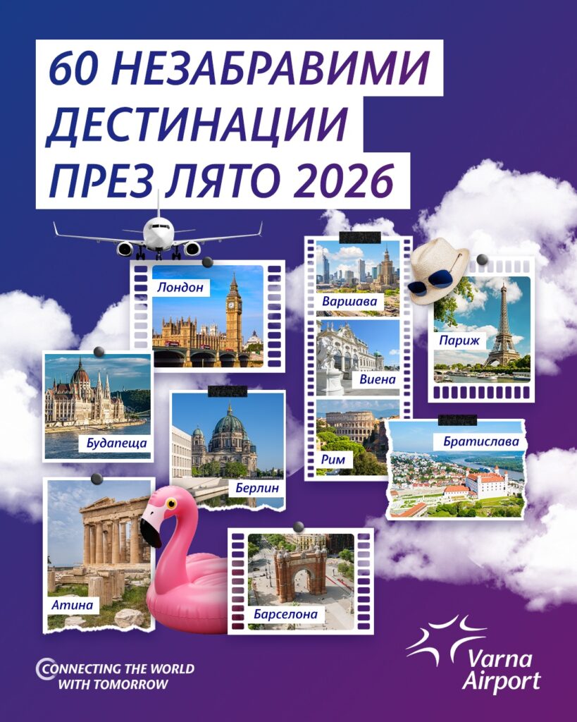 Летище Варна посреща летен сезон 2026 с изключително силна и динамично разширяваща се полетна програма, която ще предложи на пътниците достъп до общо 60 дестинации. Благодарение на активната работа с авиокомпаниите, се очаква значително увеличение на честотите, нови маршрути и ръст на туристическите потоци.