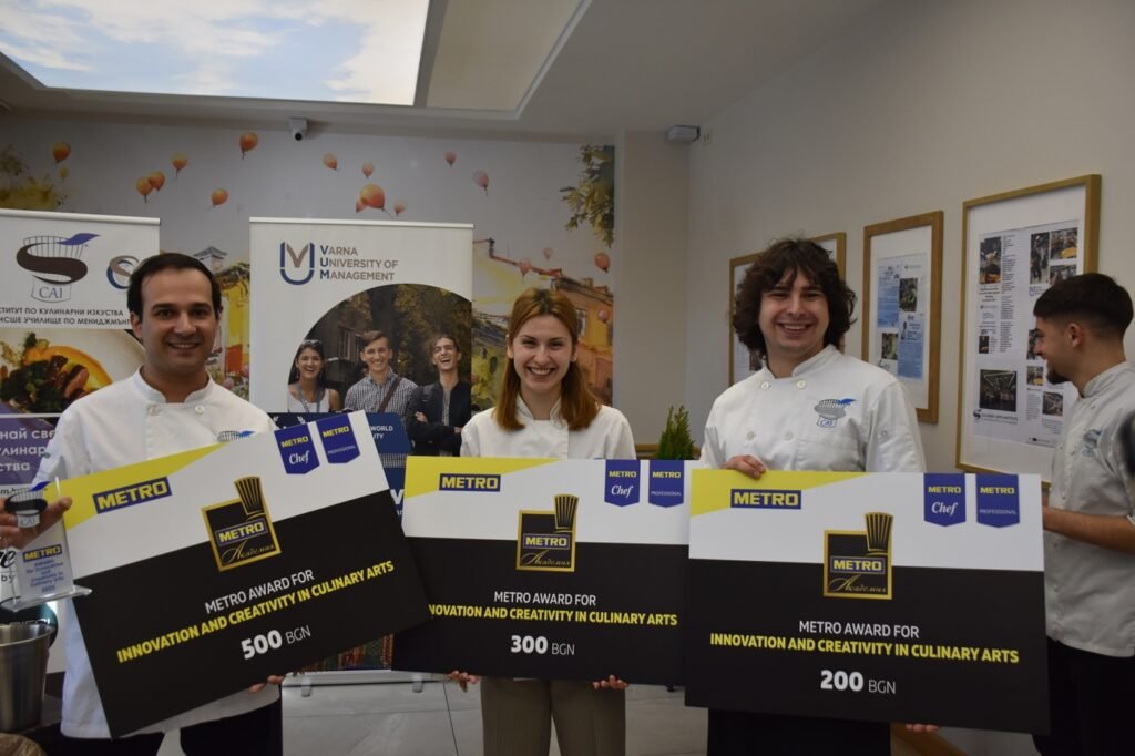Частта да обяви тримата победители имаше Моника Шуманова, която е част от екипа на “МЕТРО Академия”. Тя изрази удовлетворението си от старанието, което студентите са положили, и сподели от името на “МЕТРО”, че се гордеят с успешното сътрудничество на организациите и винаги ще подкрепя младите професионалисти с иновативен подход в кулинарията, завършили образованието си във ВУМ.