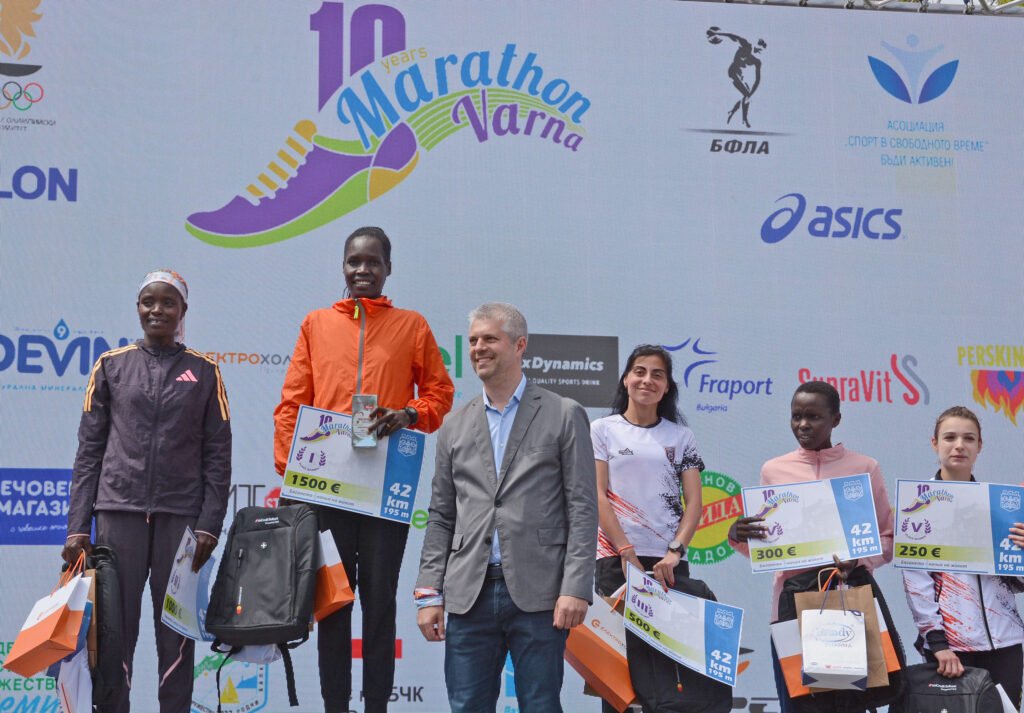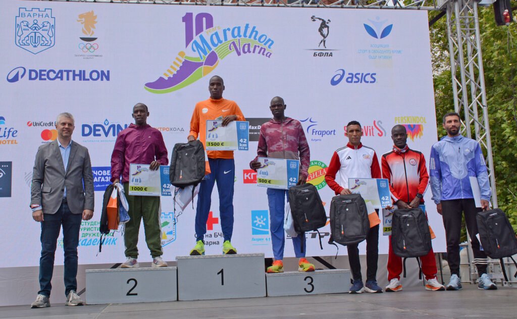 Кметът Благомир Коцев връчи наградите на победителите в престижния лекоатлетически Маратон Варна, който отбеляза своето десето издание. Призовите места в класическата дистанция от 42.195 км и тази година заеха кенийските бегачи. Първи стана Бернард Ту с време 02:22:24, а след него се наредиха Космас Киген (02:22:34) и Амос Кембой (02:22:52). В шестицата на най-дългото разстояние е и състезателят на варненския клуб „Евър“ Исмаил Ссенанджи, който финишира с време 02:24:49, като с този резултат стана и национален шампион.