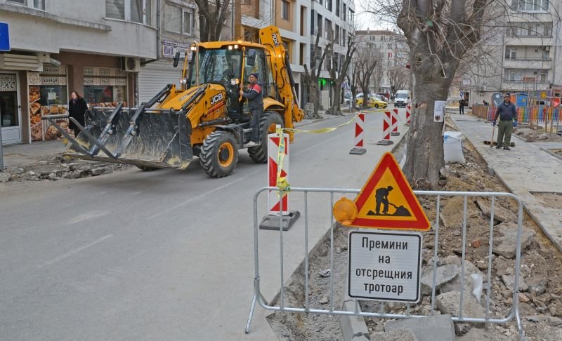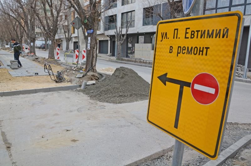 В ход е ремонт на ул. “Патриарх Евтимий” в район “Одесос” във Варна. В момента се изграждат нови тротоари и бордюри. Предстои цялостна подмяна на асфалтовата настилка. Поставени са нови стълбове с енергоспестяващи осветителни тела.”