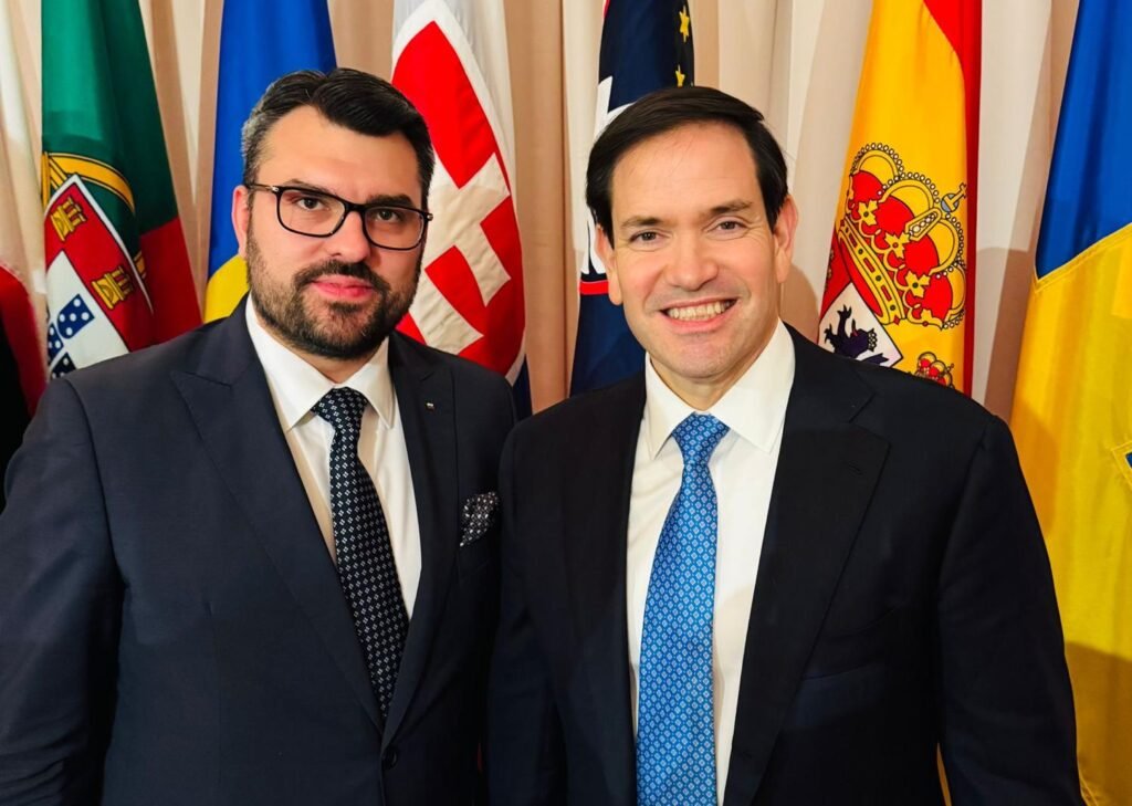 Министърът на външните работи на Република България Георг Георгиев разговаря с държавния секретар на САЩ Марко Рубио. Двамата се срещнаха в рамките на трансатлантическа вечеря, организирана от Държавния департамент на САЩ с участието на външни министри от страни членки на НАТО и партньорски държави.