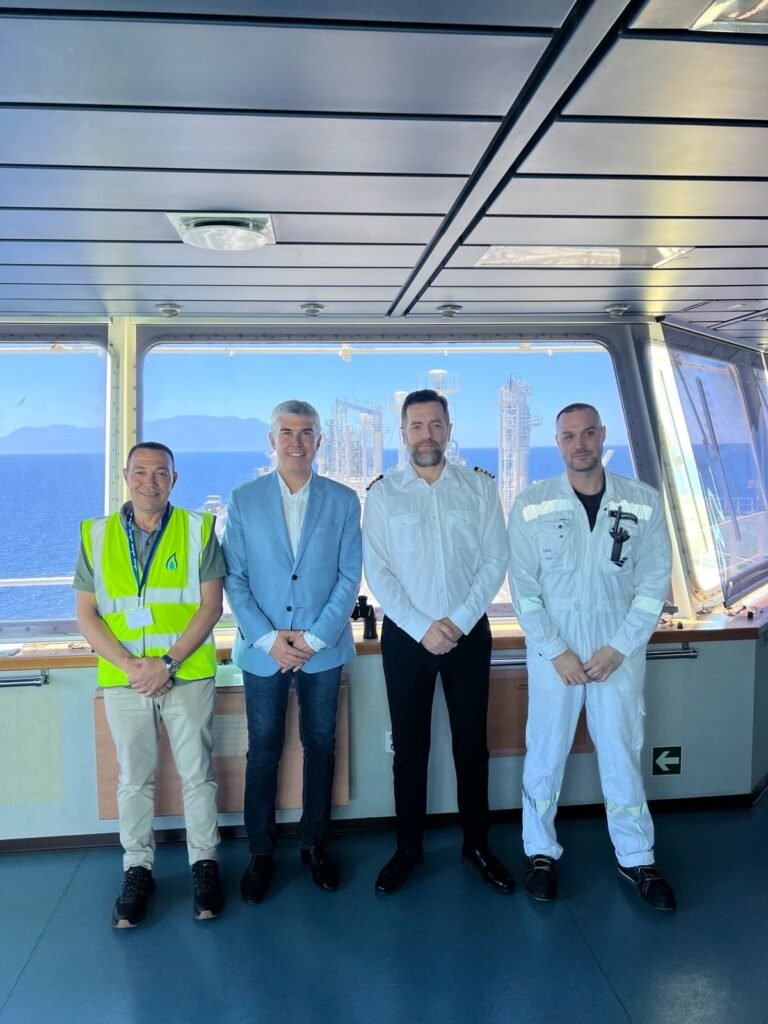 „След като техническият дефект по свързване на платформата за регазификация на втечнен природен газ до Александруполис е отстранен, терминалът ще бъде въведен в експлоатация на 1-ви октомври 2024 година. Вече са приключили и всички лицензионни процедури“. Това потвърди енергийният министър Владимир Малинов, който заедно с представители на проектната компания „Газтрейд“ С.А. инспектира приключилите дейности по съоръжението на място, на борда на платформата в Александруполис, Гърция.