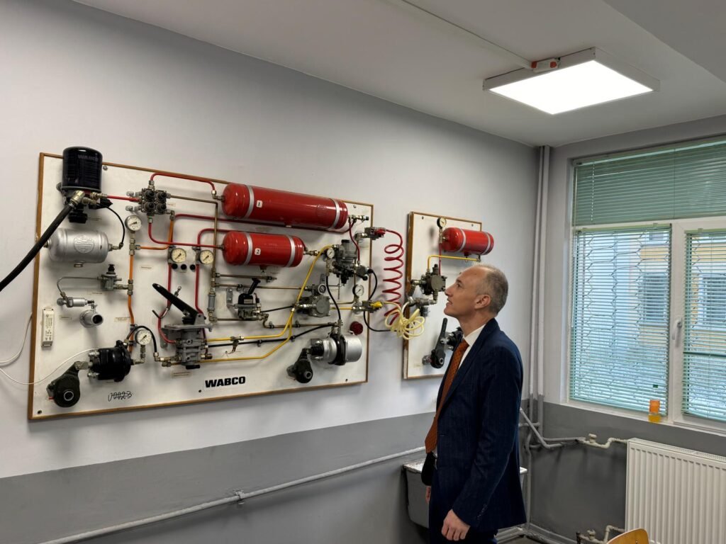 Те показаха на министър Вълчев как усвояват професионални умения чрез практика. Гимназистите разглобяваха автомобилни компоненти на 3Д графики и представиха нов автомобилен симулатор, на който се учат да управляват МПС в различни условия, както и на безопасност на движение по пътищата.