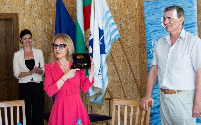 Ректорът на университета приветства министър Стойчева, благодари за възможността за осъществяването на научен диалог и връчи специалния академичен плакет, посветен на 60-годишнината на университета с реплика на златните апликации от Варненския халколитен некропол.