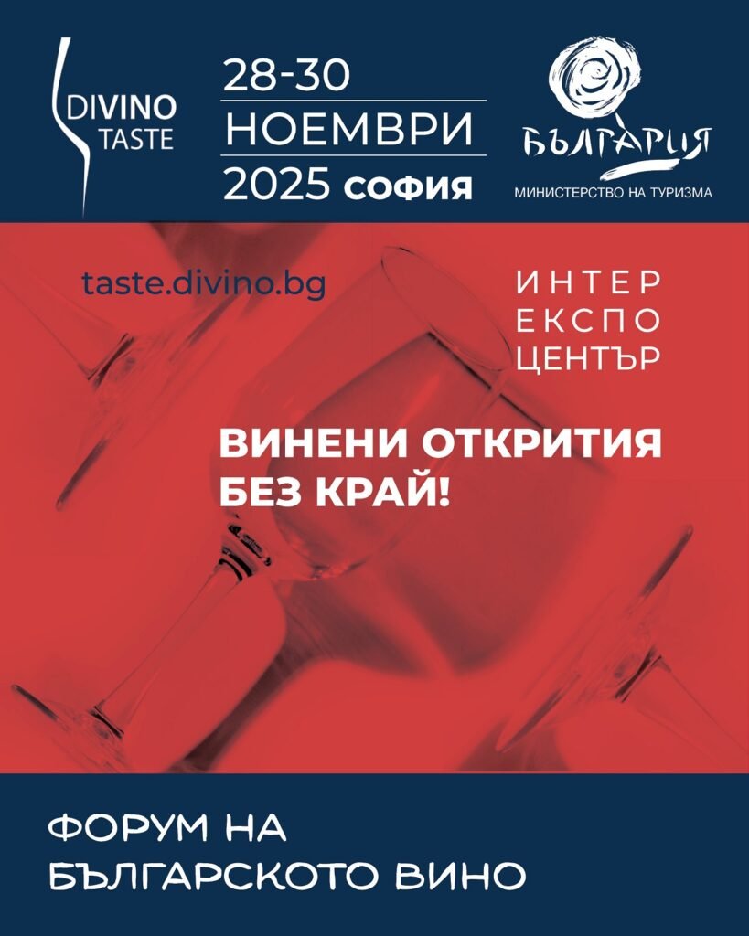 На 28 ноември в Интер Експо Център София, с подкрепата на Министерство на туризма, ще бъде открито 14-тото издание на DiVino.Taste – едно от водещите събития за българско вино и винен туризъм. Форумът традиционно събира десетки изби, експерти, сомелиери, представители на туристическия сектор и гости от страната и чужбина, превръщайки се в ключова платформа за развитие на винено-кулинарните маршрути в България.