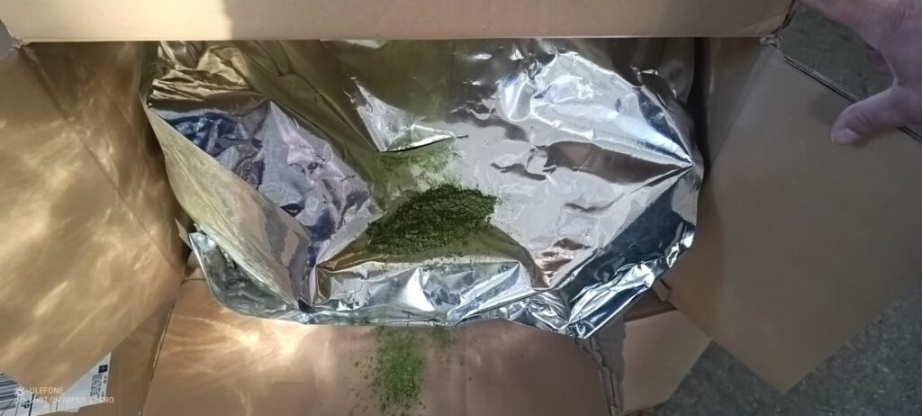 Инспекторите забелязват, че част от превозваните кашони са различни, а при отварянето им установяват, че вместо обявената стока в пет от кашоните има сребристи вакуумирани пликове с приложени към тях документи за пратка от Япония за получател в Германия.
