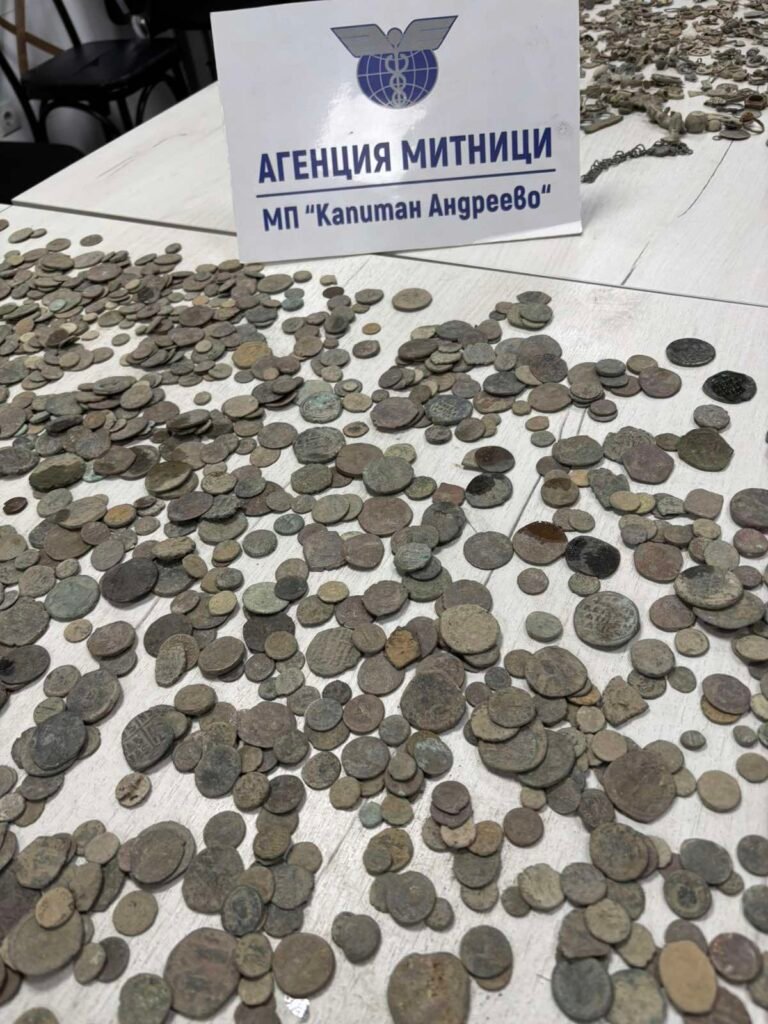 3270 старинни монети и 850 старинни предмета задържаха митническите служители на Митнически пункт Капитан Андреево при проверка на товарен автомобил, влизащ в страната от Турция.