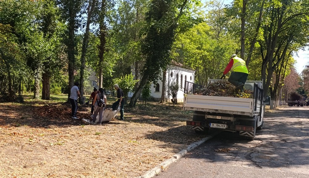От няколко дни служителите на Общинското предприятие „Паркове и обредна дейност“ оказват съдействие на Държавното предприятие „Кабиюк“ за облагородяване на тревните площи в района на новия бюст-паметник. Там в момента се оформят цветните лехи и се засяват цветя и зелена растителност.
