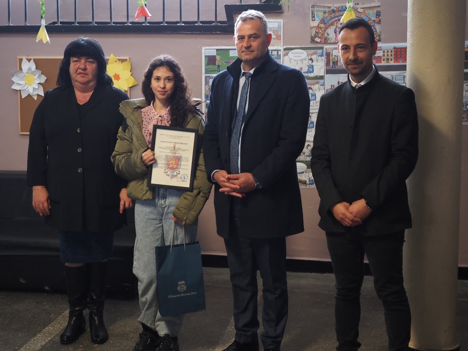 Днес, ученичката бе отличена с грамота от ОДМВР Варна за проявената честност, гражданска доблест и отговорност.