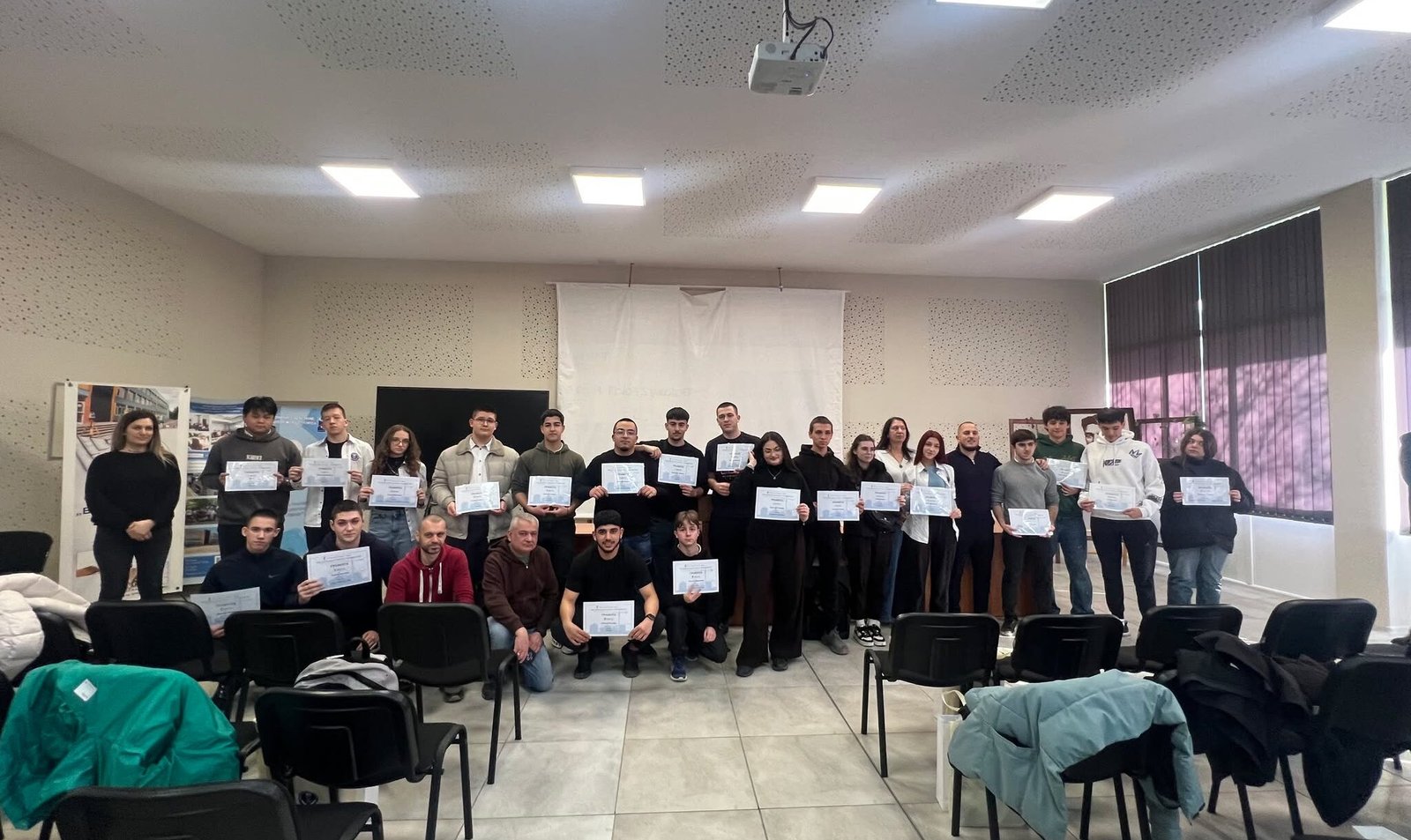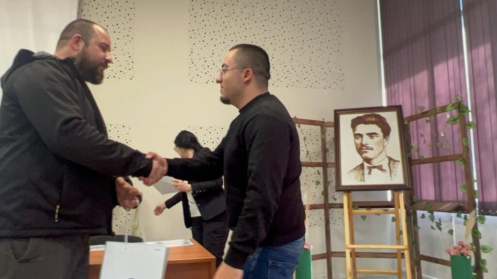В присъствието на преподаватели и съученици, 29 от възпитаниците на гимназията получиха своите заслужени награди от зам.-директорът по производствената част г-жа Милена Лефтерова и Мирослав Мухтаров от Камара на строителите.