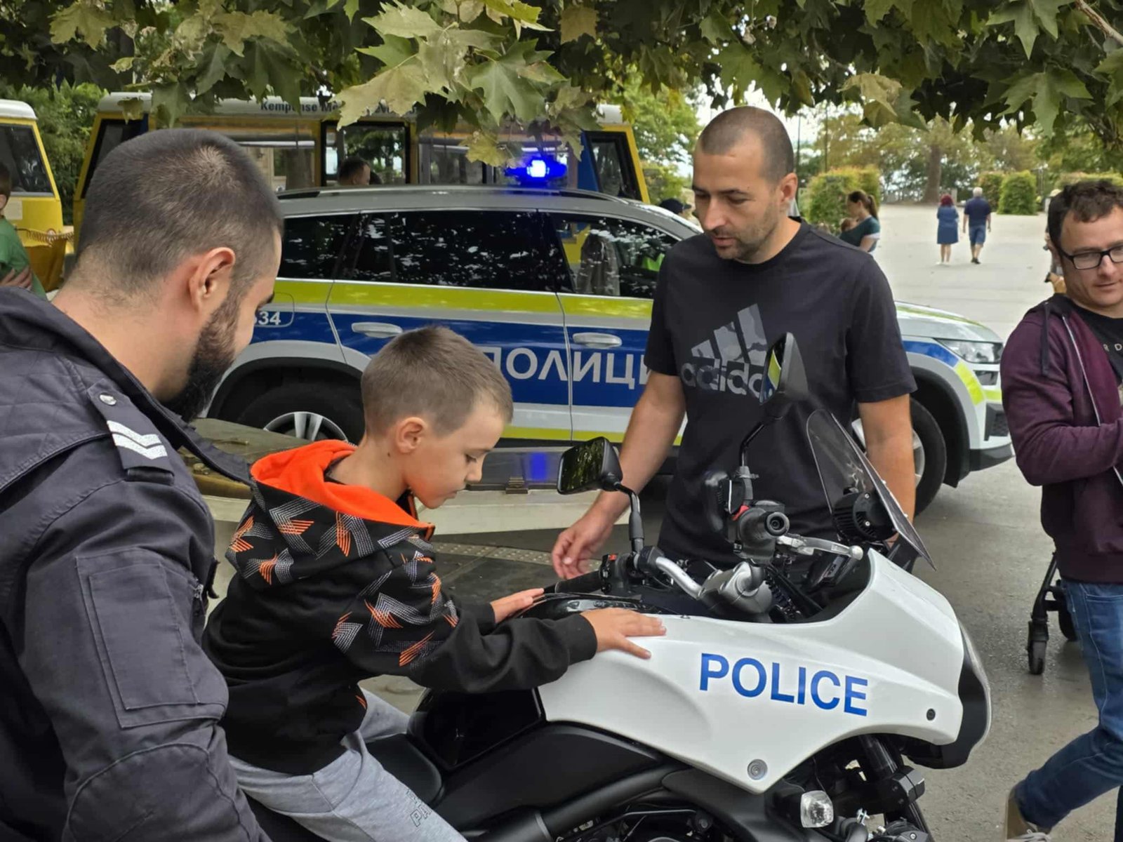 Пътни полицаи и пожарникари демонстрираха пред децата правилата за движение с велосипед и тротинетка, поведението на пътя и показаха отвътре патрулен автомобил и пожарна кола. Доброволци от Българския червен кръст обучаваха малчуганите в оказване на първа помощ.