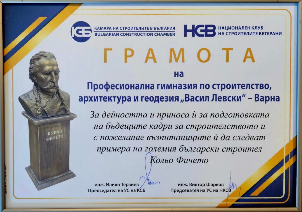 Областното представителство на варненската браншова организация, в лицето на председателя й – инж. Пенко Стоянов и Светослав Жеков, член на ОС засвидетелстваха признателността на КСБ към колектива на гимназията за дългогодишния им принос в развитието на поколения специалисти, отдали знанията и опита си на строителната професия. Поздрав към учители и ученици отправи и Марин Велчев, председател на Камара на архитектите във Варна.