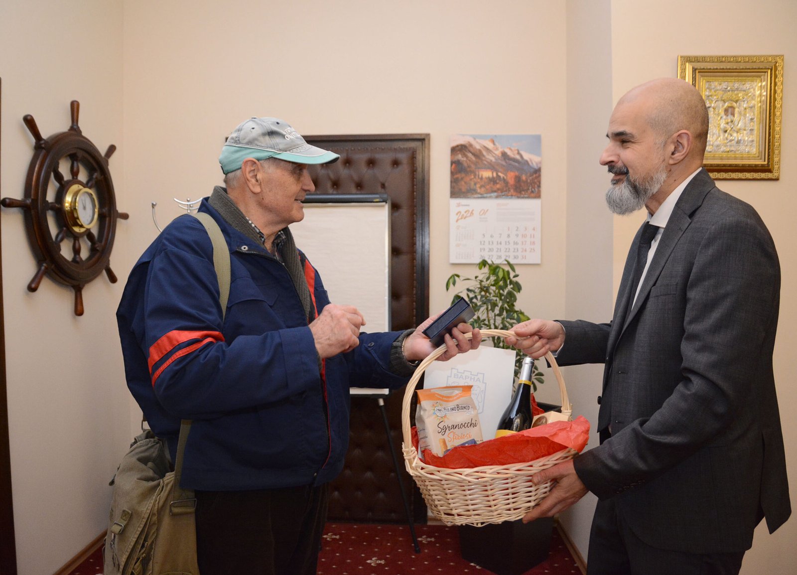 С отвертка в ръка в кметския кабинет го завари и изненадата от ръководството на Община Варна. Рожденикът беше поздравен от заместник-кмета Павел Попов, който му връчи специален плакет и поздравителен адрес от името на кмета Благомир Коцев.