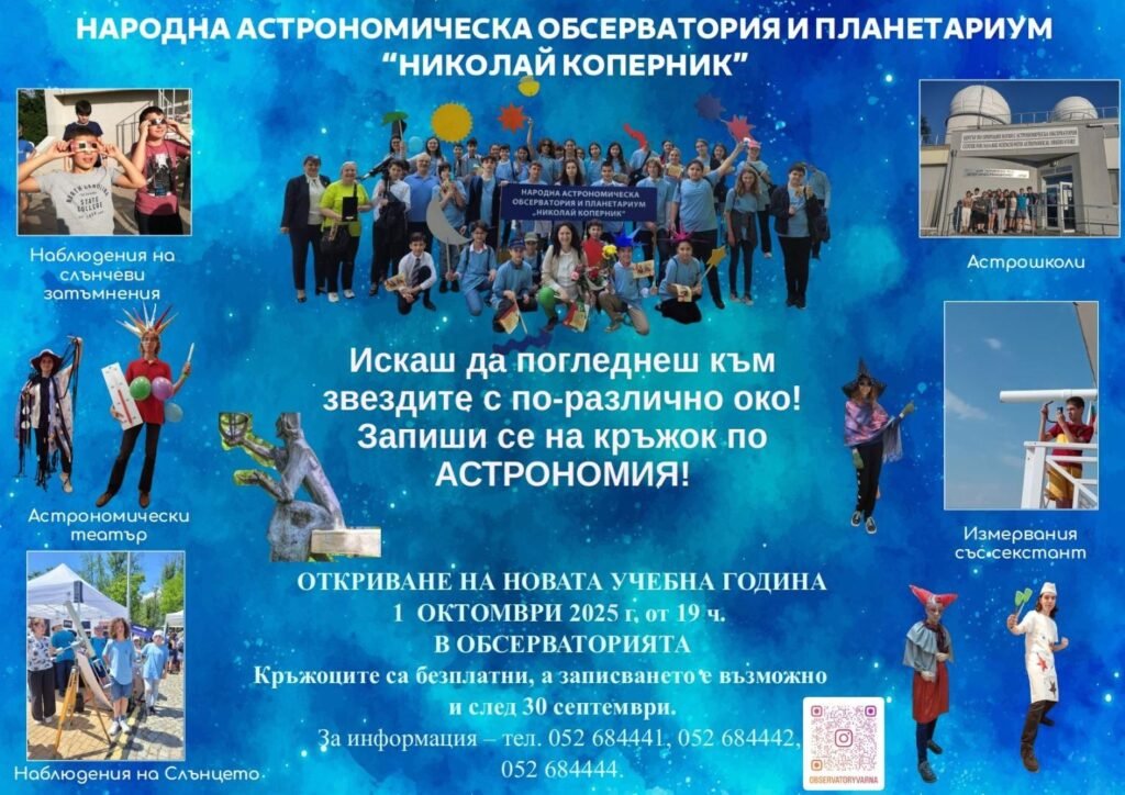 Националната астрономическа обсерватория и планетариум „Николай Коперник“ – Варна ще открие новата учебна 2025/26 година на 1 октомври 2025 г. от 19:00 ч. в зала „Планетариум“.