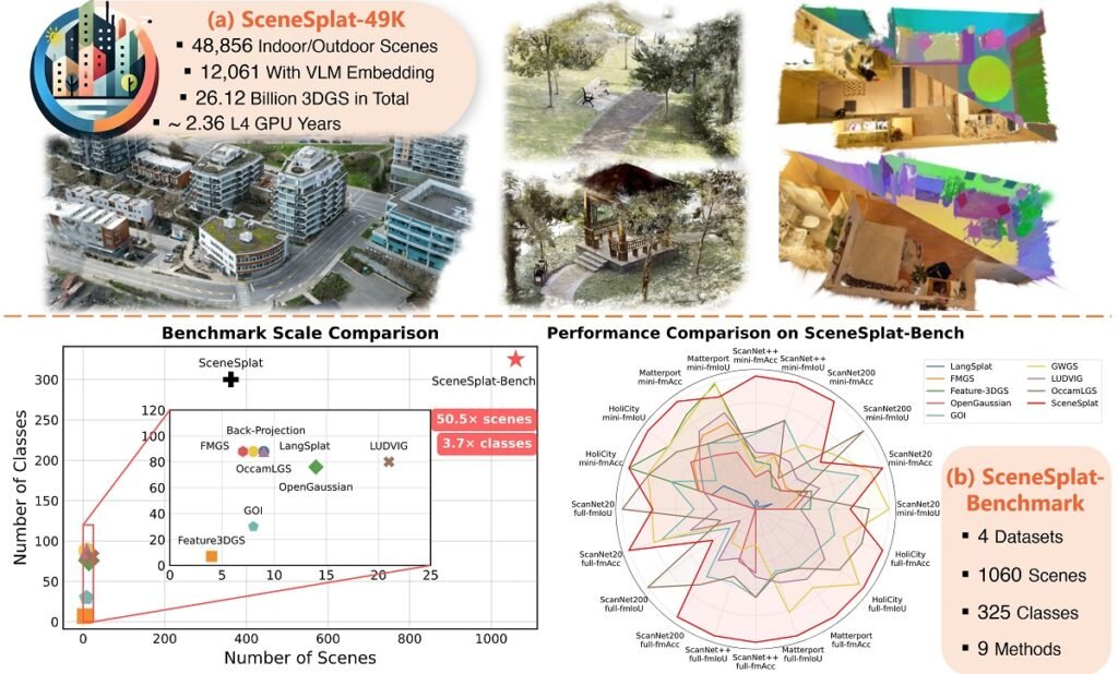 INSAIT, съвместно с водещи международни научни институции, представя SceneSplat-49k, най-голямата публично достъпна колекция от висококачествени и сложни 3D сцени във формат Gaussian Splatting, както и SceneSplat-Benchmark, цялостна платформа за оценка на модели за Language Gaussian Splatting.
