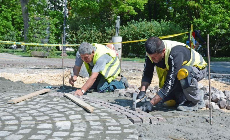 Паветата се пренареждат и се запълват липсващите и изпочупени блокчета, посочват от ресорната дирекция.