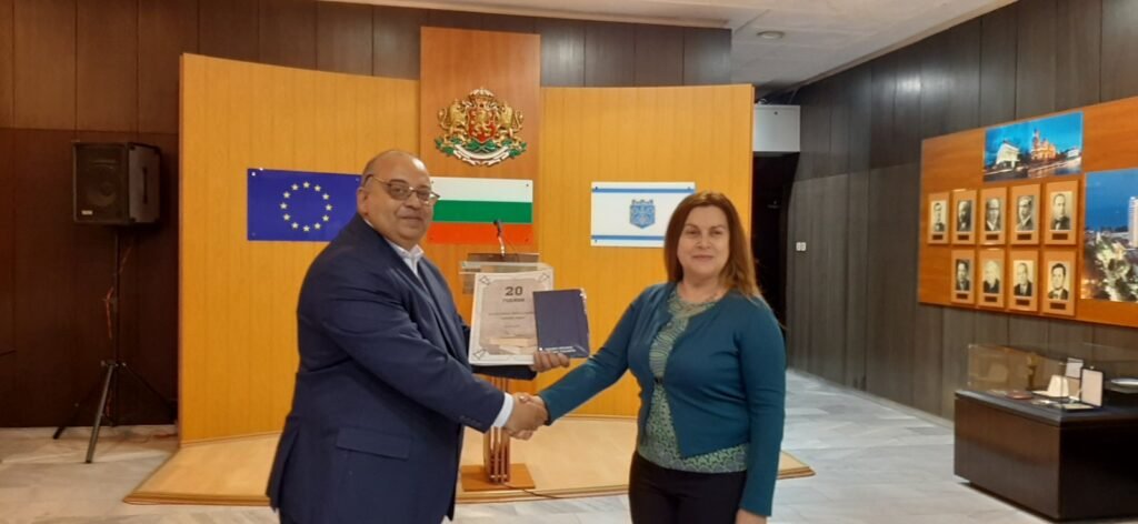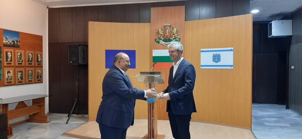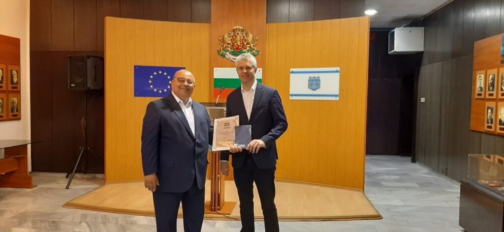 Днес той връчи благодарствени грамоти на кмета на града Благомир Коцев, на директора на дирекция “Спорт” Кристиян Димитров и други представители на общинската администрация, които имат заслуги за развитието на дейността на ромското духовно и културно средище.