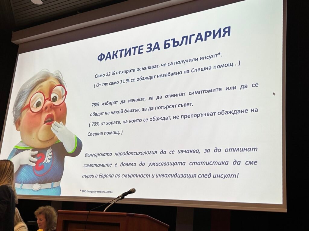 Идеята за популяризиране на програмата у нас е провокирана от тревожната статистика, според която един от всеки 4-ма възрастни получава инсулт през живота си, което се превръща в причина №1 за инавалидизация и смърт в България. Само 22% от хората, попадащи в тази група, осъзнават риска и разпознават правилно симптомите на инсулт, разказа още Хадживълчева.