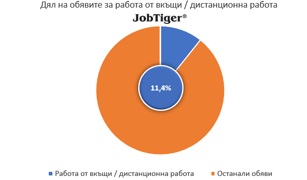 Анализът на HR компанията и кариерен сайт JobTiger показва, че броят на предложенията за работа от вкъщи и/или дистанционна работа е намалял с 21% спрямо предходния месец, но спрямо м. декември 2024 г. е с близо 1470 обявени позиции повече.