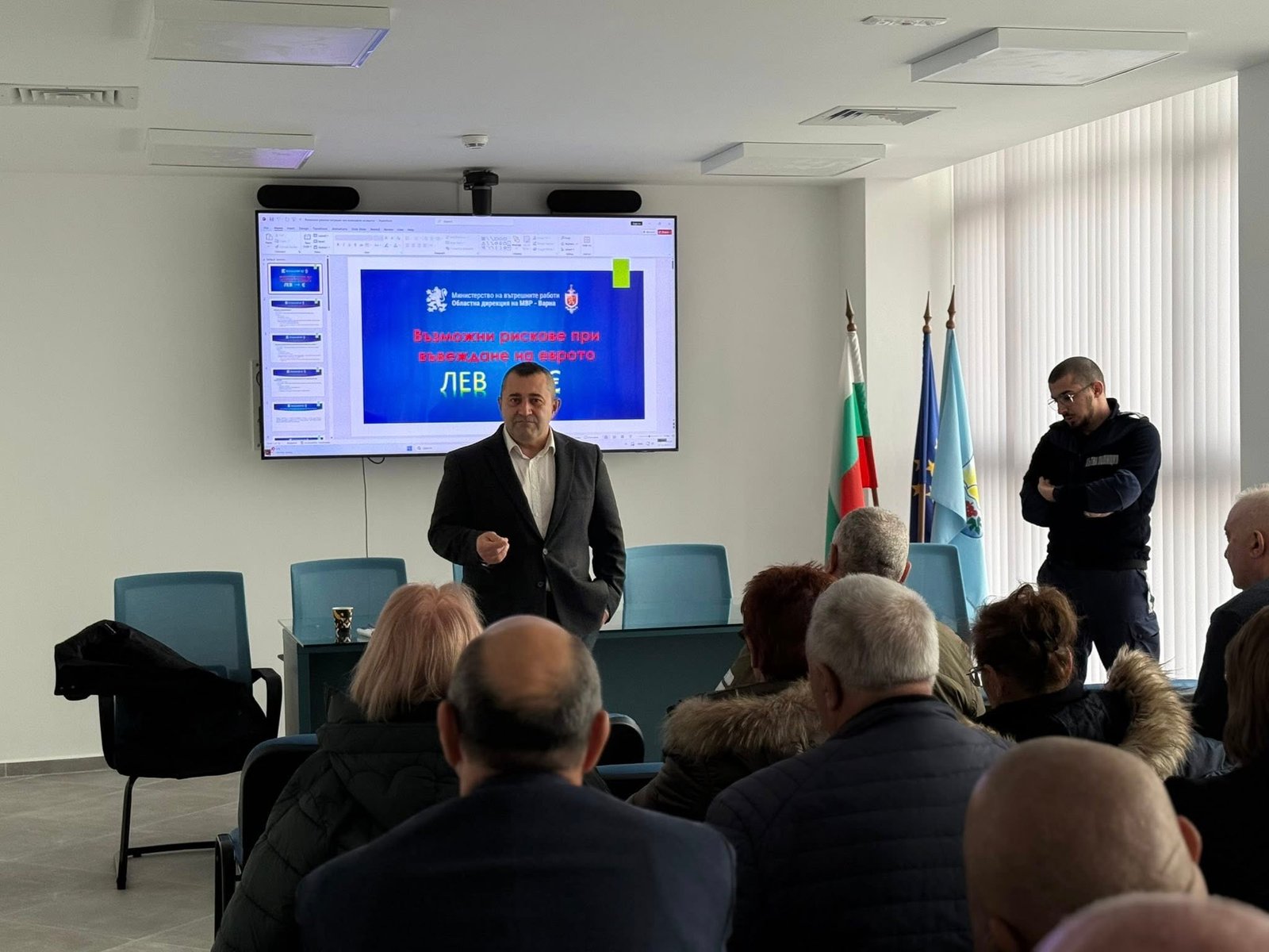 Служители от икономическа и криминална полиция проведоха срещи с представители на местната власт в общините Провадия, Долни Чифлик, Аксаково, Суворово и Вълчи дол. По време на разговорите бяха представени основните акценти в превантивната дейност и мерките за предотвратяване на измами, свързани с въвеждането на новата валута.