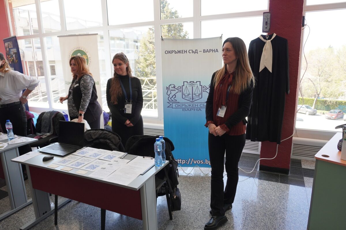 За втора поредна година Окръжният съд – Варна участва в Деня на кариерата, организиран във ВСУ „Черноризец Храбър“, където се срещна с бъдещи юристи от специалност „Право“.