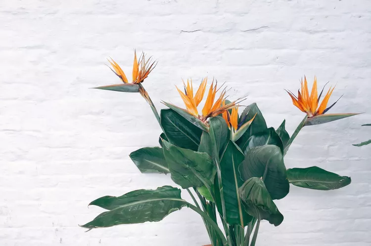 Райската птица е тропическо растение от Южна Африка, впечатляващо с огромните си листа и уникални оранжево-сини цветове, наподобяващи птица в полет.