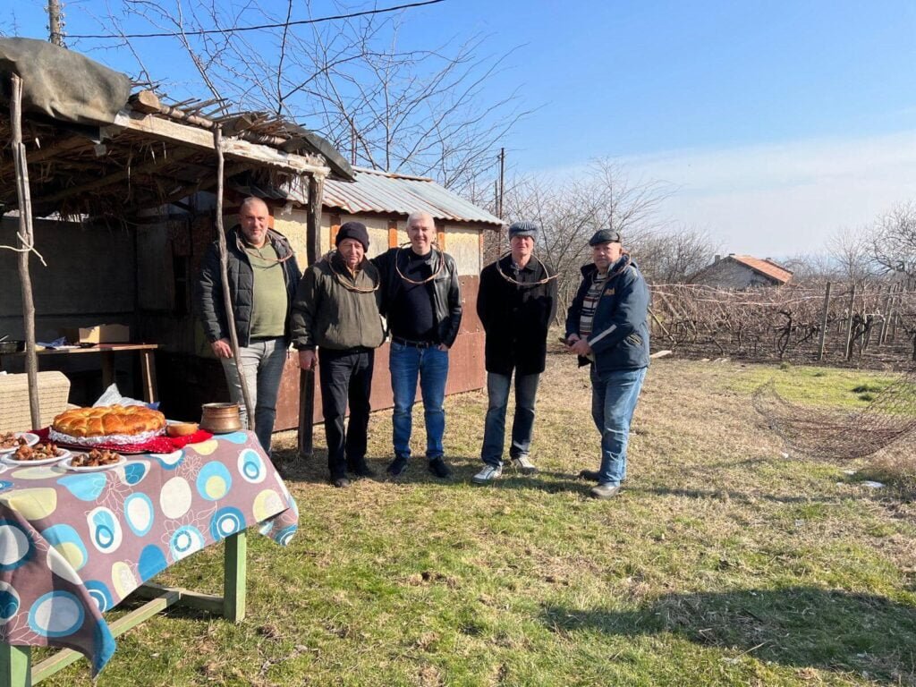 По стара българска традиция, г-н Злати Златев – Председател на ОбС – Дългопол, заряза три лозови пръчки, поля корените на лозата с вино и благослави: “Да даде Свети Трифон голям берекет”.
