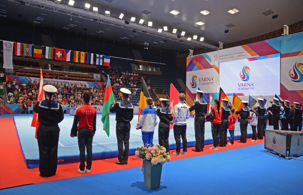 Европейското първенство по спортна акробатика за младежи и девойки бе открито днес в Двореца на културата и спорта във Варна.