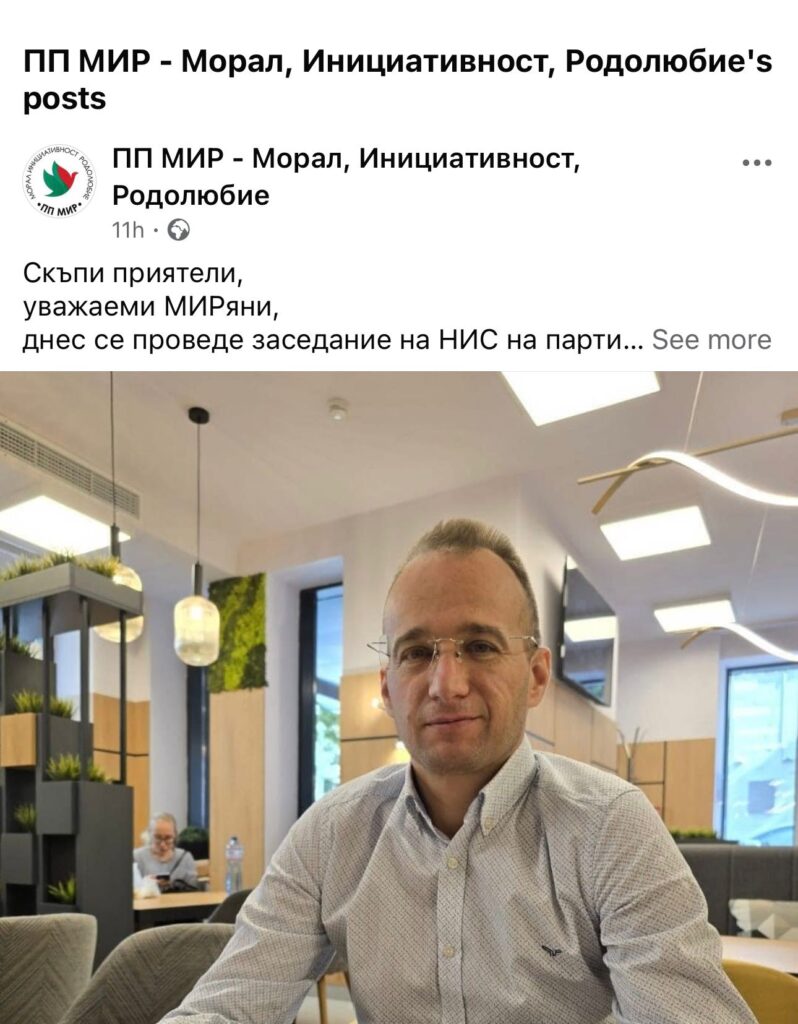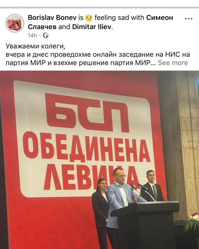 „Проведохме онлайн заседание на НИС на партия МИР и взехме решение партия МИР да излезе от коалицията “БСП-Обединена левица”.