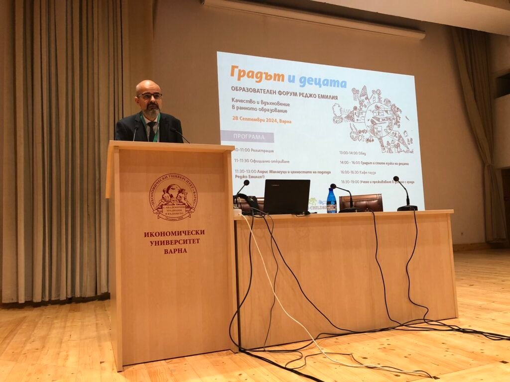 Заместник-кметовете по образованието и социалната политика Павел Попов и Снежана Апостолова откриха образователен форум “Градът и децата”, който се провежда днес в зала “Аула” на Икономически Университет – Варна. Основен акцент на инициативата са образователните методи на подхода Реджо Емилия, водещ началото си от северно-италианския град със същото име и образователните идеи на педагога Лорис Малагуци. Организатор на събитието е фондация „Калейдоскоп“, с подкрепата на Община Варна.