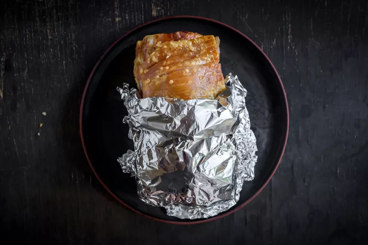 3. Извадете от фурната, проверете вътрешната температура с термометър – трябва да е поне 63°C в най-дебелата част.