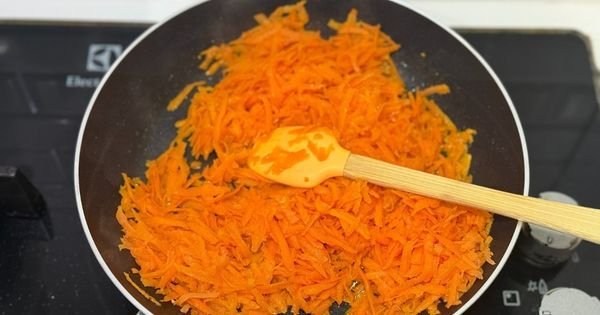Настържете морковите и ги запържете леко в малко зехтин или олио.
