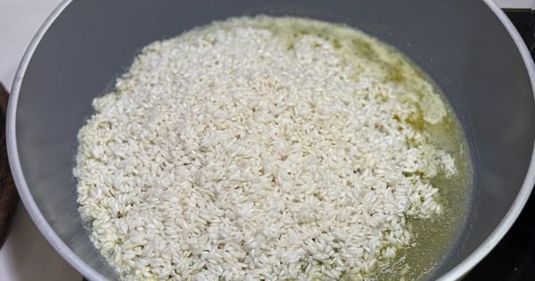 Разтопете останалото масло в тенджера и добавете предварително накиснатия, измит ориз.