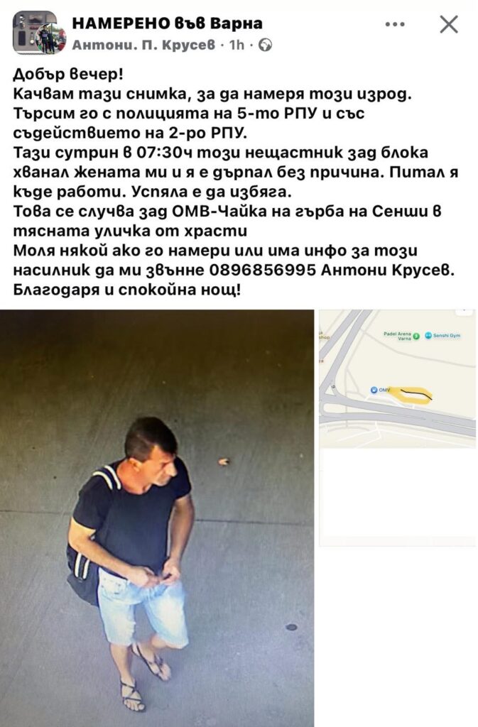 Варненската полиция издирва мъж, който е нападнал жена вчера сутринта в района зад бензиностанция ОМВ в кв. „Чайка“, близо до спортен център „Сенши“. Сигналът е подаден около 08:50 ч., уточниха от ОДМВР – Варна.