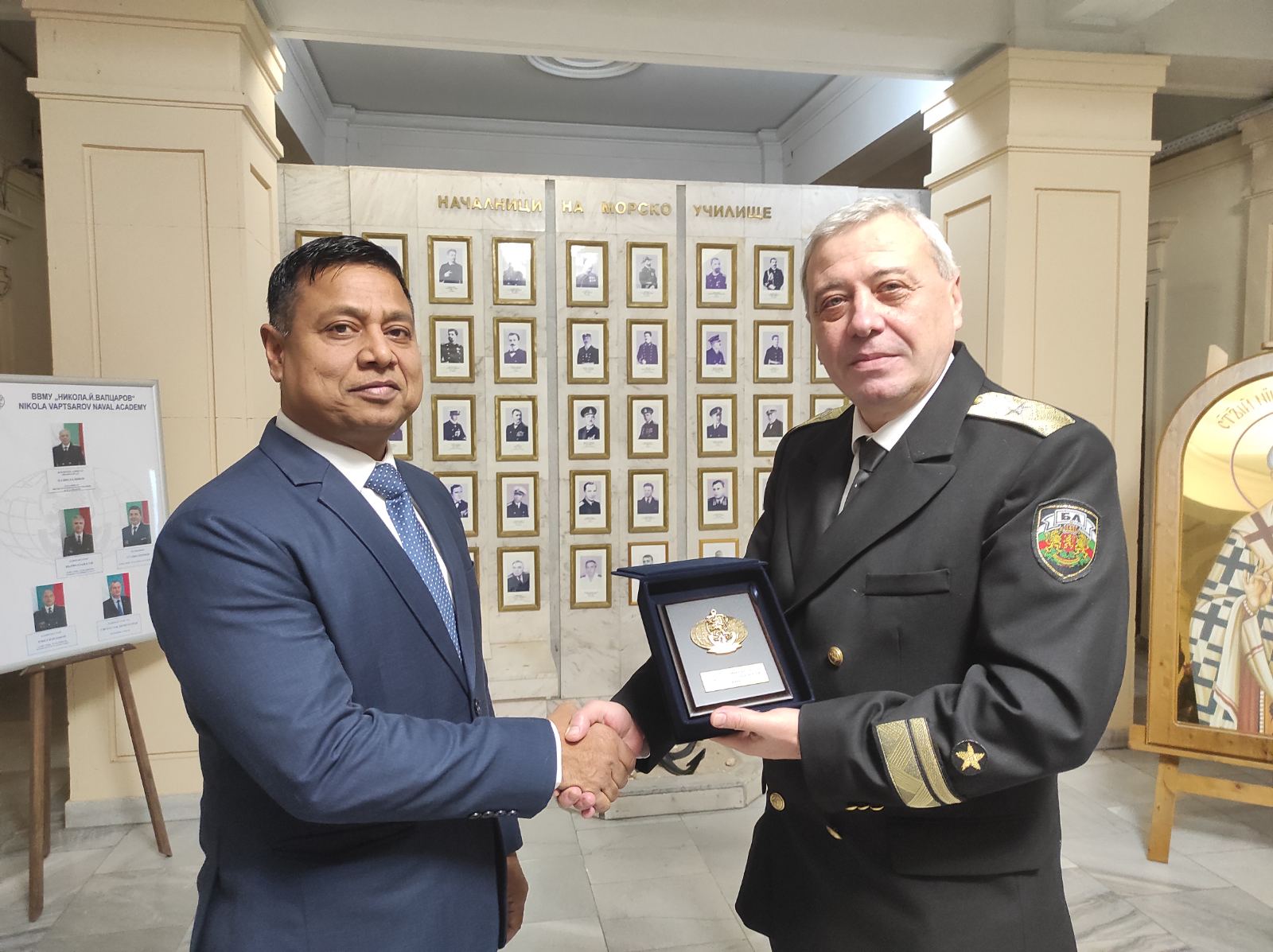 Извънредният и пълномощен посланик на Република Индия в България – Н. Пр. Санджай Рана, посети ВВМУ „Н. Й. Вапцаров“. Той бе посрещнат от началника на Училището – флотилен адмирал проф. д-р Калин Калинов, който направи презентация на дейностите на Морско училище. Подробно бяха обсъдени проектите, които ВВМУ развива.
