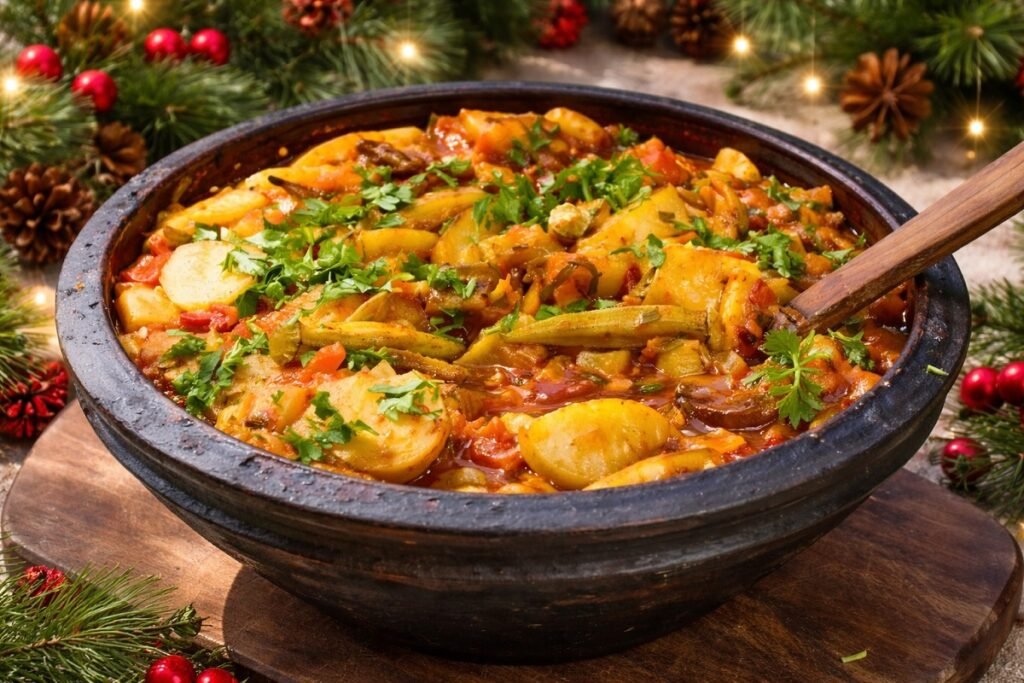 🍄 4. Постен гювеч с гъби и зеленчуци