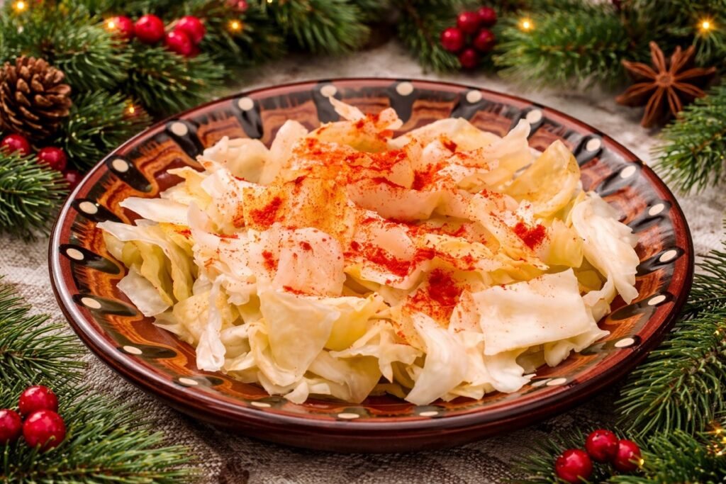 Киселото зеле се нарязва и се овкусява с малко олио и червен пипер, а туршията се поднася директно. Това е най-бързото, но задължително ястие на трапезата.