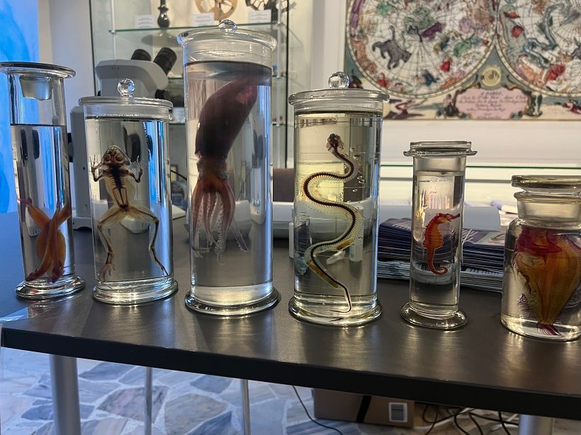 На друг щанд пък беше отделено специално внимание на медузите в Черно море. Млади учени демонстрираха как се правят снимки на медузите с въздушен и подводен дрон. Оказва се, че през 80-те години на миналия век Черно море е било пред екокатастрофа – точно заради медуза. Става въпрос за Гребеновидната медуза (Mnemiopsis leidyi), която оказва се има висока толерантност към различни нива на соленост. рез 1980-те години е случайно интродуциран в Черно море чрез баластните води на корабите. Инвазивният вид причинява големи стопански загуби на местния риболов, тъй като се храни с ларвите и хайвера на рибата. Балансът на екосистемата е възстановен чрез интродуцирането на Beroe ovata , който пък се храни с Mnemiopsis leidyi. В Черно море се срещат общо 4 вида медузи, които не са опасни за хората. Учените показаха и как изглежда самата Beroe ovata