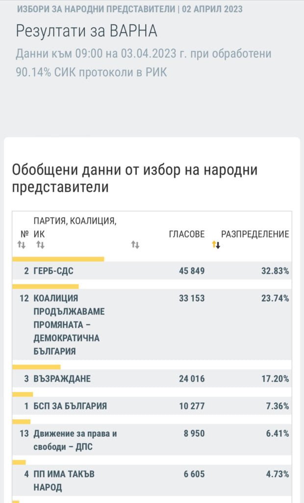 При обработени 90,14% от протоколите: ГЕРБ/СДС е със сериозна преднина пред ПП-ДБ във Варна